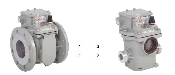 殼體是由耐氣候變化的鑄鋁合金制成,表層已涂色. 依照結(jié)構(gòu)設(shè)計(jì)形式可分為法蘭盤(圖3中1)連接或螺紋連接(圖3中2). 對(duì)殼體的變型品種選項(xiàng)將在下文第5點(diǎn)(單浮子瓦斯繼電器)和第7點(diǎn)( 雙浮子瓦斯繼電器)中加以說(shuō)明. 其他選項(xiàng)歡迎垂詢.
