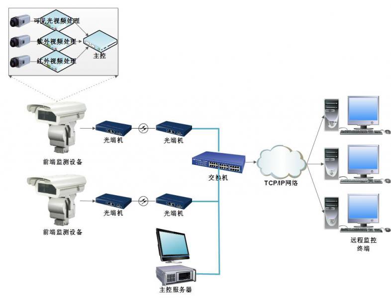 系統(tǒng)可實現(xiàn)對紫外、紅外和可見光圖像的遠程傳輸和監(jiān)控, 超溫、電暈超標報警提示。通過遠程對攝像機控制,預制定位,遠程切換,自動巡視等。能夠支持多場所的中央監(jiān)控,不受地理限制,多個用戶可同時監(jiān)控同一前端,發(fā)生異常自動抓拍,同時自動啟動錄像機,具有很好的兼容性及可擴展性。提高運行人員對設(shè)備缺陷的識別能力和預見性。